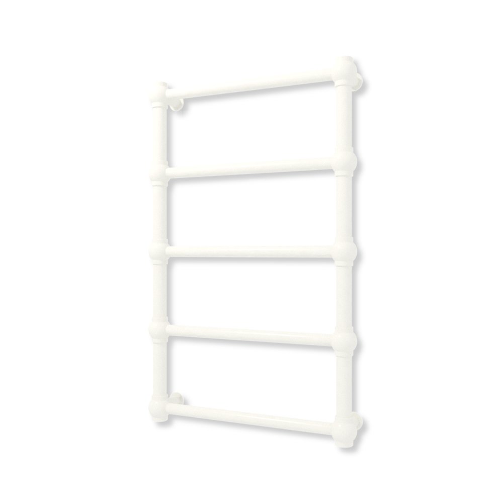 Bryła grzejnika została skonstuowana z rur o przekroju koła oraz stalowych kul. Całość tworzy formę charakterystyczną dla stylu retro.