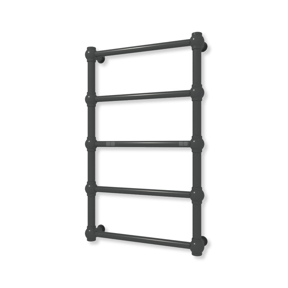 Bryła grzejnika została skonstuowana z rur o przekroju koła oraz stalowych kul. Całość tworzy formę charakterystyczną dla stylu retro.