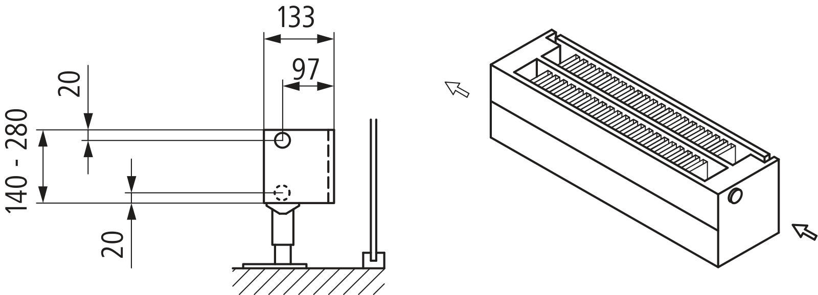 Grzejnik konwektorowy z ekranem przeciw wypr. typ 22 210 x 2400
