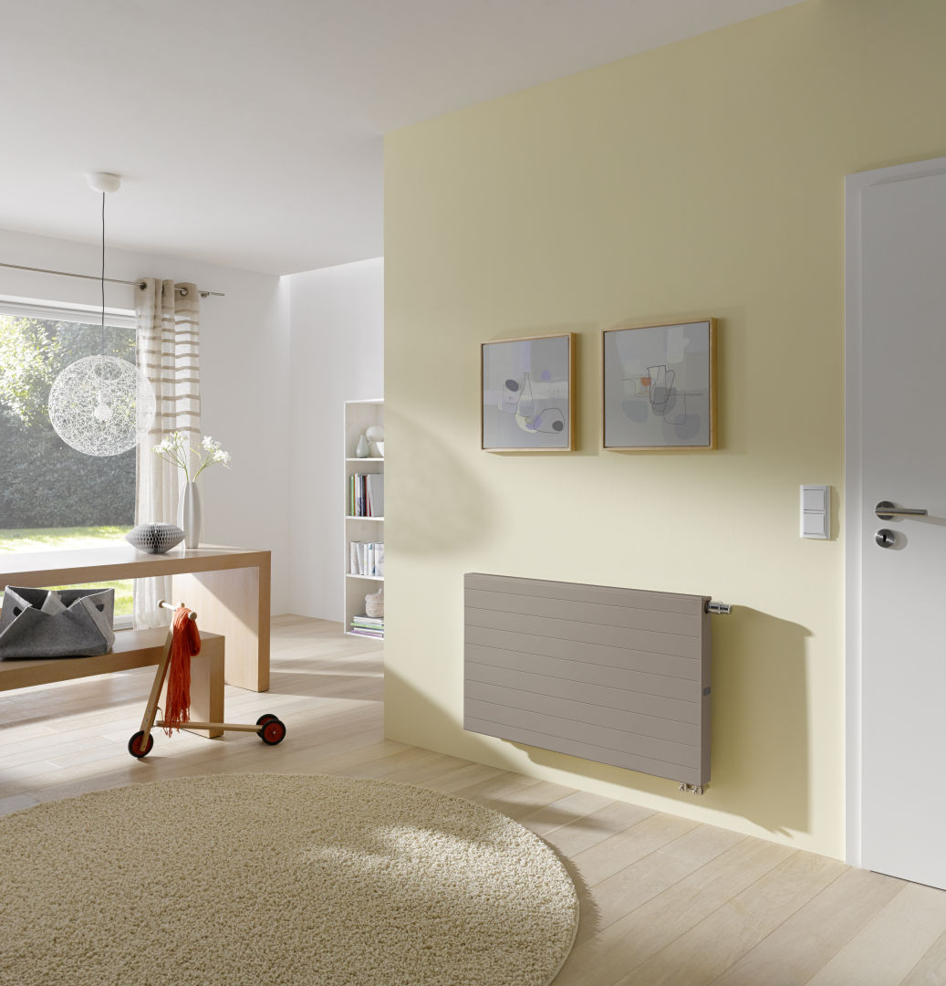 Grzejnik zaworowy Kermi jest podłączany od dołu z boku. Wkładka zaworowa ze wstępnie nastawionymi wartościami kv w grzejnikach zaworowych jest montowana fabrycznie.