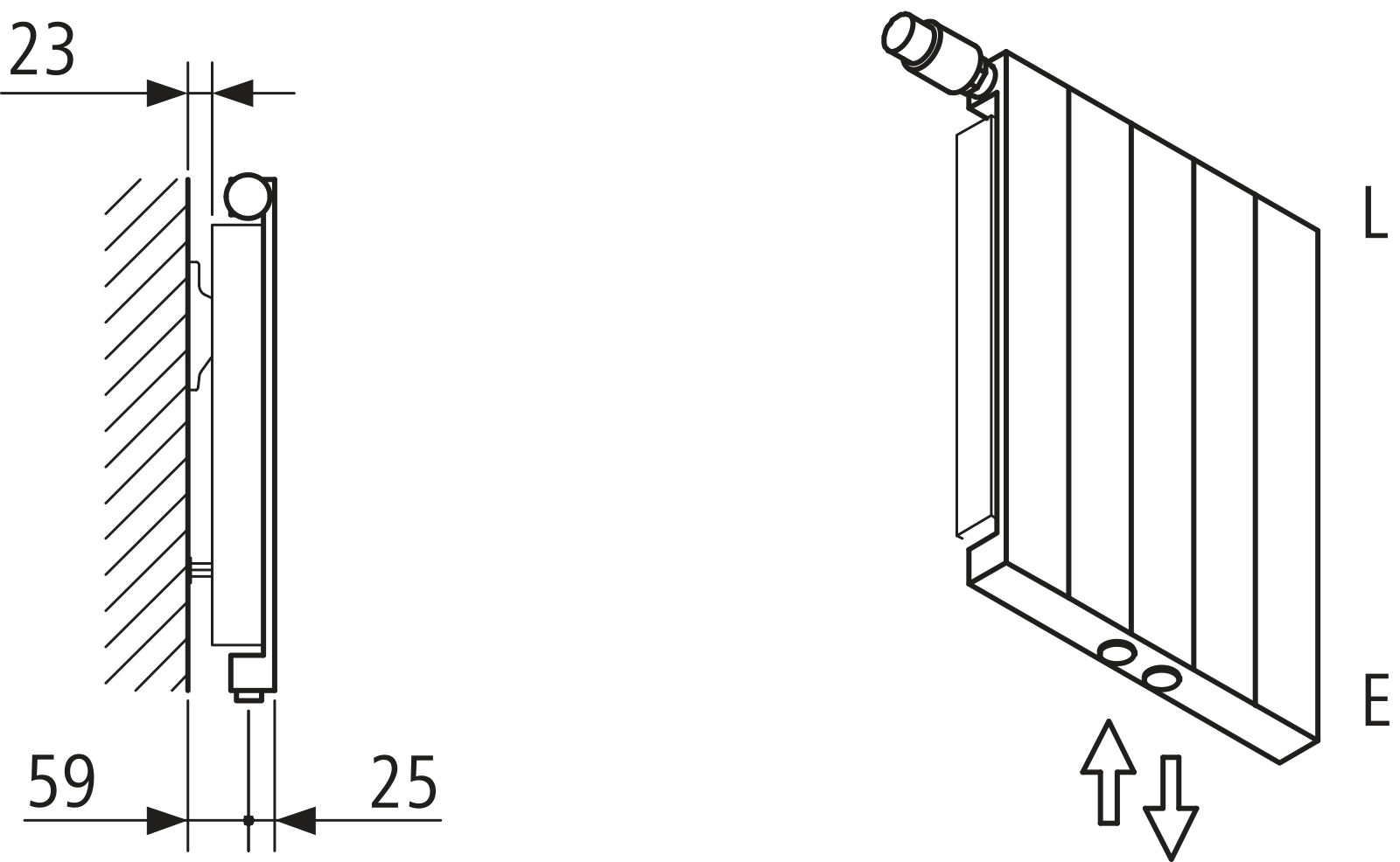 Pionowe, smukłe wykonanie – estetycznie wykończone za pomocą standardowo montowanej bocznej osłony lub idealne dostosowanie w wersji poziomej – z elegancką osłoną lub bez.