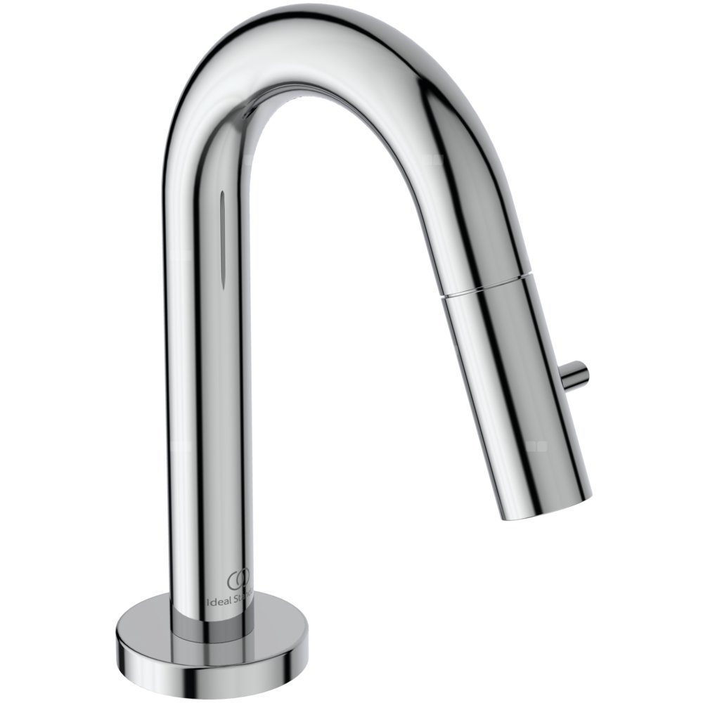 Pillar tap for cold or premixed water. Tubular spout R125. Volume control on the front end of the tubular spout. Hidden aerator Cache M21.5x1. G½“ Ceramic disc headpart opened and closed with a rotary handle. G½” shank fixation. Flow rate at 3 bar 6 l/min. Comply with EN817.