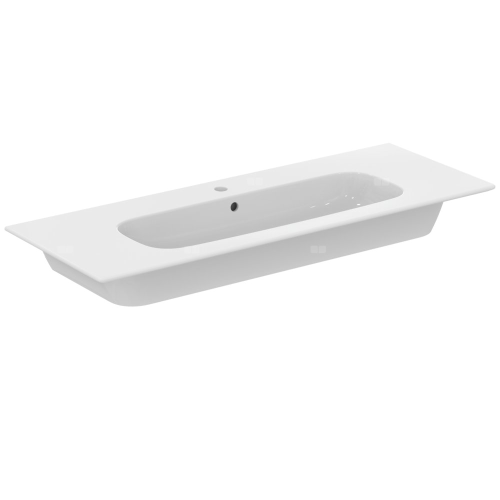 Umywalka Ideal Standard i.life A z powierzchniami bocznymi i centralnym wybitym otworem na baterię oraz przelewem.