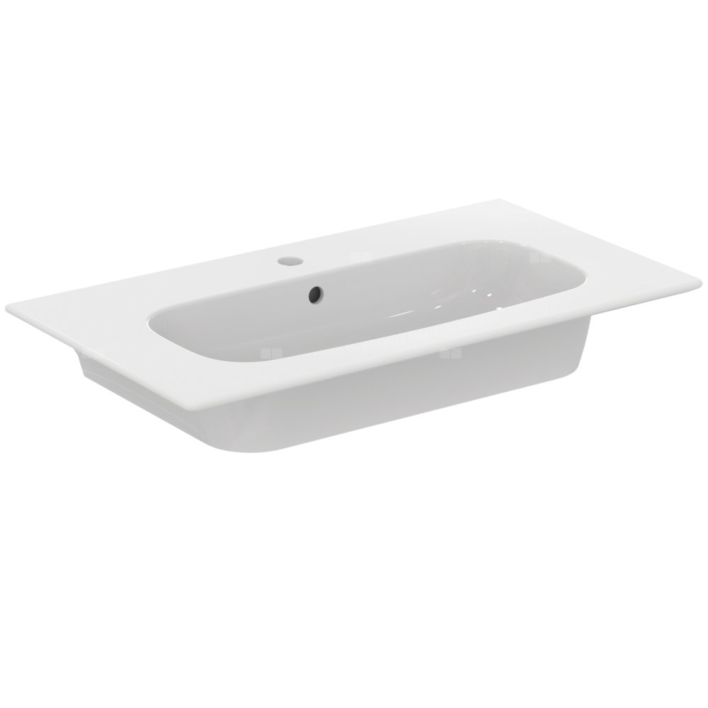Umywalka Ideal Standard i.life A z powierzchniami bocznymi i centralnym wybitym otworem na baterię oraz przelewem.