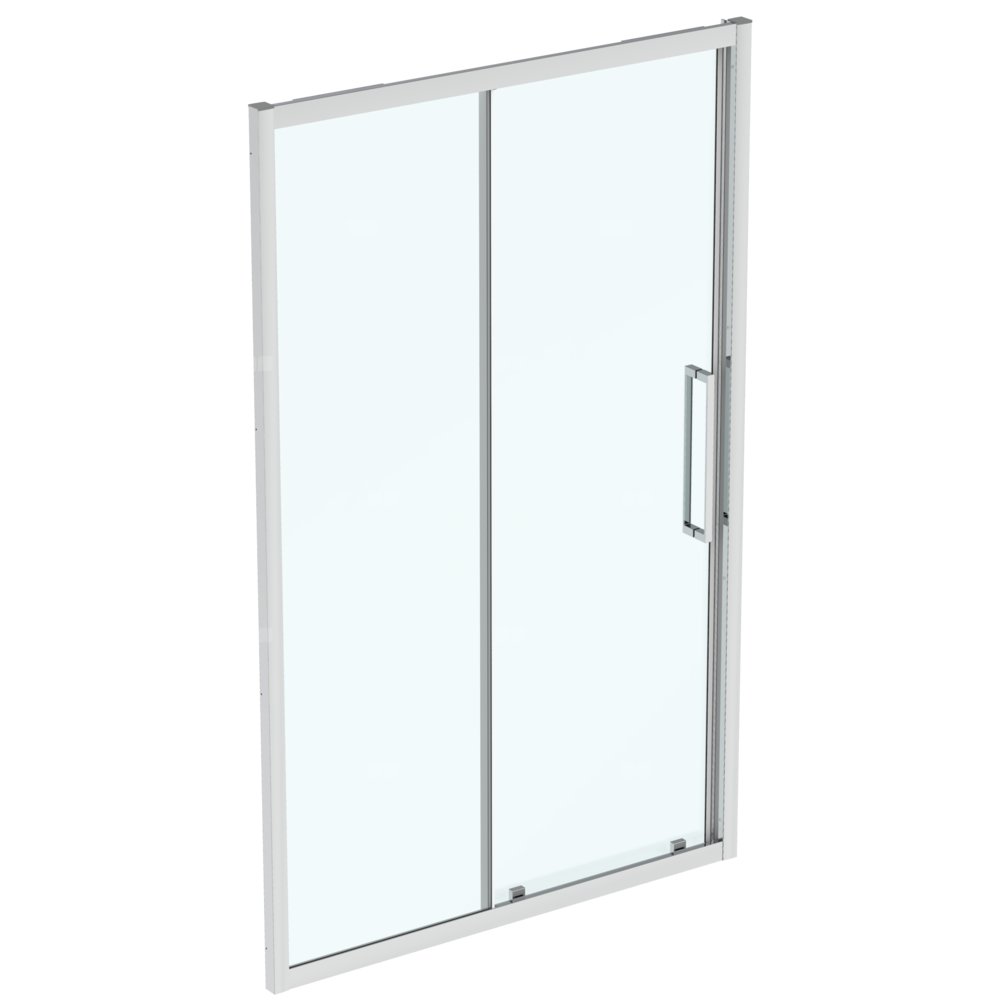 Drzwi przesuwne prysznicowe z panelem bocznym. Wykonane z bezpiecznego transparentnego szkła 8 mm z powłoką Ideal Clean zabezpieczającą przed osadzaniem się kamienia. Profile aluminiowe o grubości 1,2 mm. Rozciągliwość 20 mm na profil. Zastosowanie systemu podwójnych kółek na górze z systemem szybkiego zamykania na dole. Przeznaczony do montażu we wnęce (ściana do ściany) lub w narożniku (z panelem bocznym typu L). Do montażu z brodzikami Ideal Standard lub bezpośrednio na płytkach. Wszystkie produkty z linii są odwracalne. Więcej informacji oraz rekomendowanych rozwiązań znajduje się w katalogu lub cenniku.