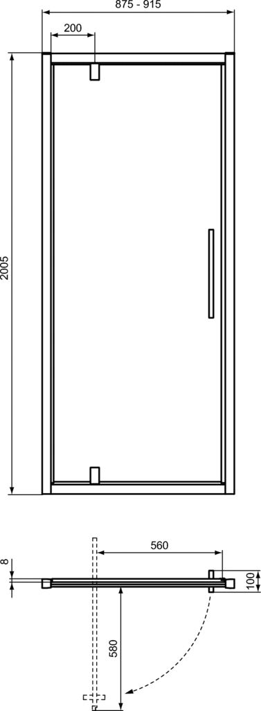 Drzwi uchylne Ideal Standard i.life otwierane na zewnątrz. Wykonane z bezpiecznego transparentnego szkła 8 mm z powłoką Ideal Clean zabezpieczającą przed osadzaniem się kamienia. Profile aluminiowe o grubości 1,2 mm. Rozciągliwość 20 mm na profil. Przeznaczony do montażu we wnęce (ściana do ściany) lub w narożniku (z panelem bocznym typu L). Do montażu z brodzikami Ideal Standard w odpowiednich wymiarach lub bezpośrednio na płytkach. Wszystkie produkty z linii są odwracalne. Więcej informacji oraz rekomendowanych rozwiązań znajduje się w katalogu lub cenniku.