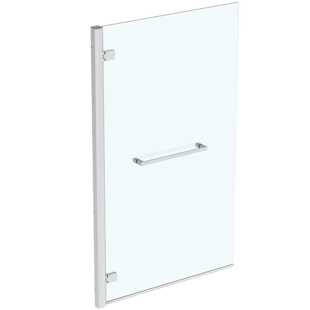 Parawan nawannowy Ideal Standard i.life z zawiasami, wysokość 1500 mm. Wykonany z transparentnego szkła 8 mm z powłoką ułatwiającą czyszczenie z poziomą poręczą na ręcznik (450 x 20 mm). Grubość profila: 1,2 mm, regulacja ułatwiająca dopasowanie do 25 mm, z ukrytymi śrubami (maskowanie na każdej stronie profilu ściennego). Parawan otwiera się tylko na zewnątrz. Zawias mocowany do ściany. WAŻNE: z uwagi na zawias mocujący, produkt nie jest odwracalny. Produkt dostępny jest w wersji lewej i prawej.