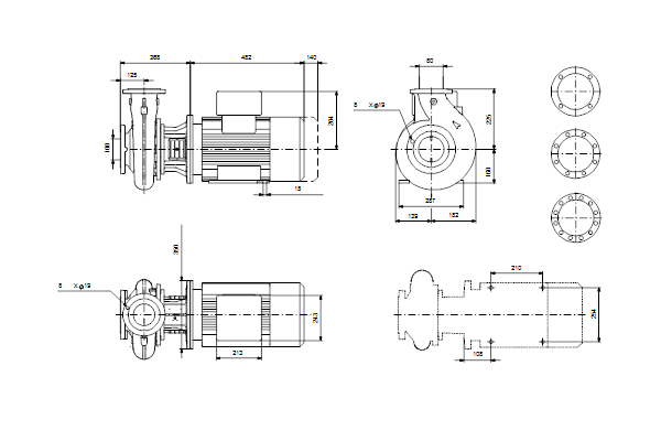 Normalnie ssąca, jednostopniowa pompa odśrodkowa zaprojektowana zgodnie z ISO 5199, o wymiarach i nominalnych osiągach wg EN 733 (10 bar). Wyposażona jest w kołnierze typu PN 16 o wymiarach według EN 1092-2. Pompa wyposażona jest w osiowy króciec ssawny, promieniowy króciec tłoczny, wał poziomy oraz konstrukcję back-pull-out umożliwiającą demontaż silnika, podstawy silnika, pokrywy oraz wirnika bez naruszania obudowy pompy lub rur.