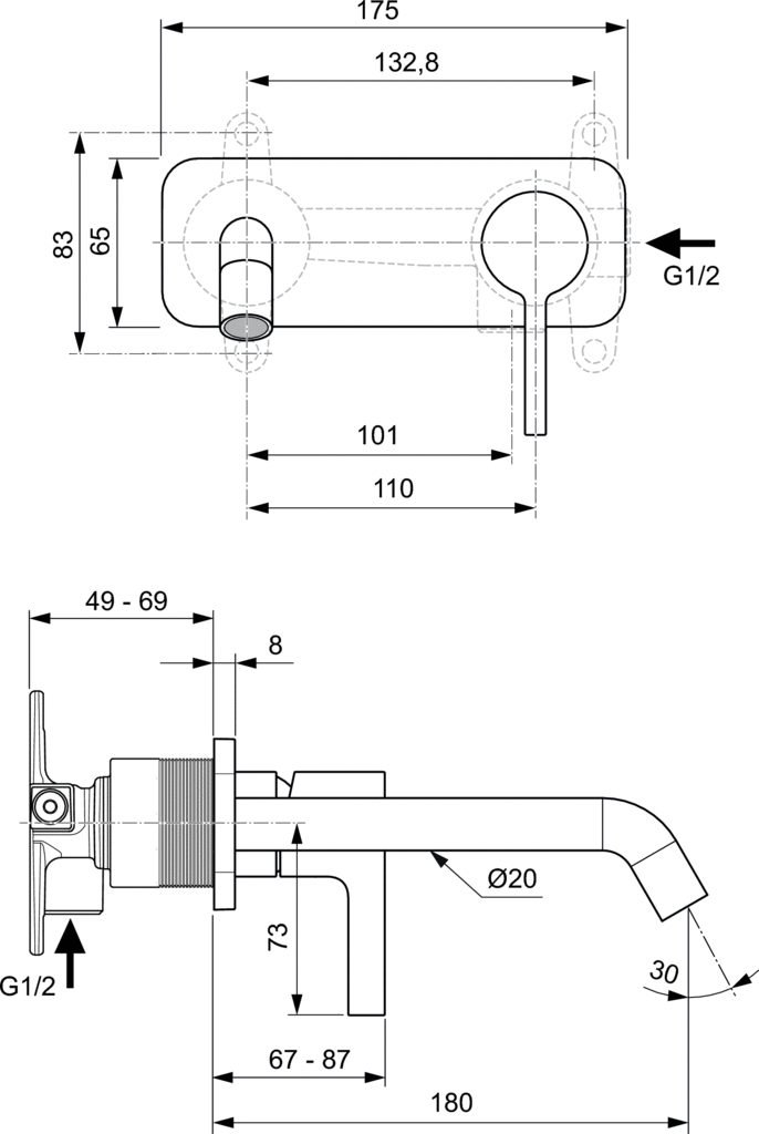 Zestaw montażowy podtynkowej baterii umywalkowej. Głowica ceramiczna 28 mm z ogranicznikiem temperatury wody. Bez funkcji Click. Wylewka rurowa o długości 180 mm. Zaokrąglona, prostokątna, metalowa rozeta z logo Ideal Standard. Metalowy uchwyt z logo Ideal Standard bez oznaczeń. Aerator typu Caché M16,5x1 z ogranicznikiem przepływu wody do 5 l/min. Do skompletowania z elementem montażowym A1313NU.