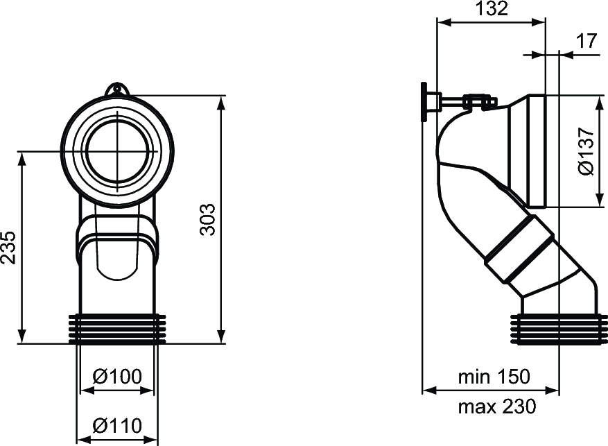 Kolanko 90 st. dł. 90mm z mocowaniem