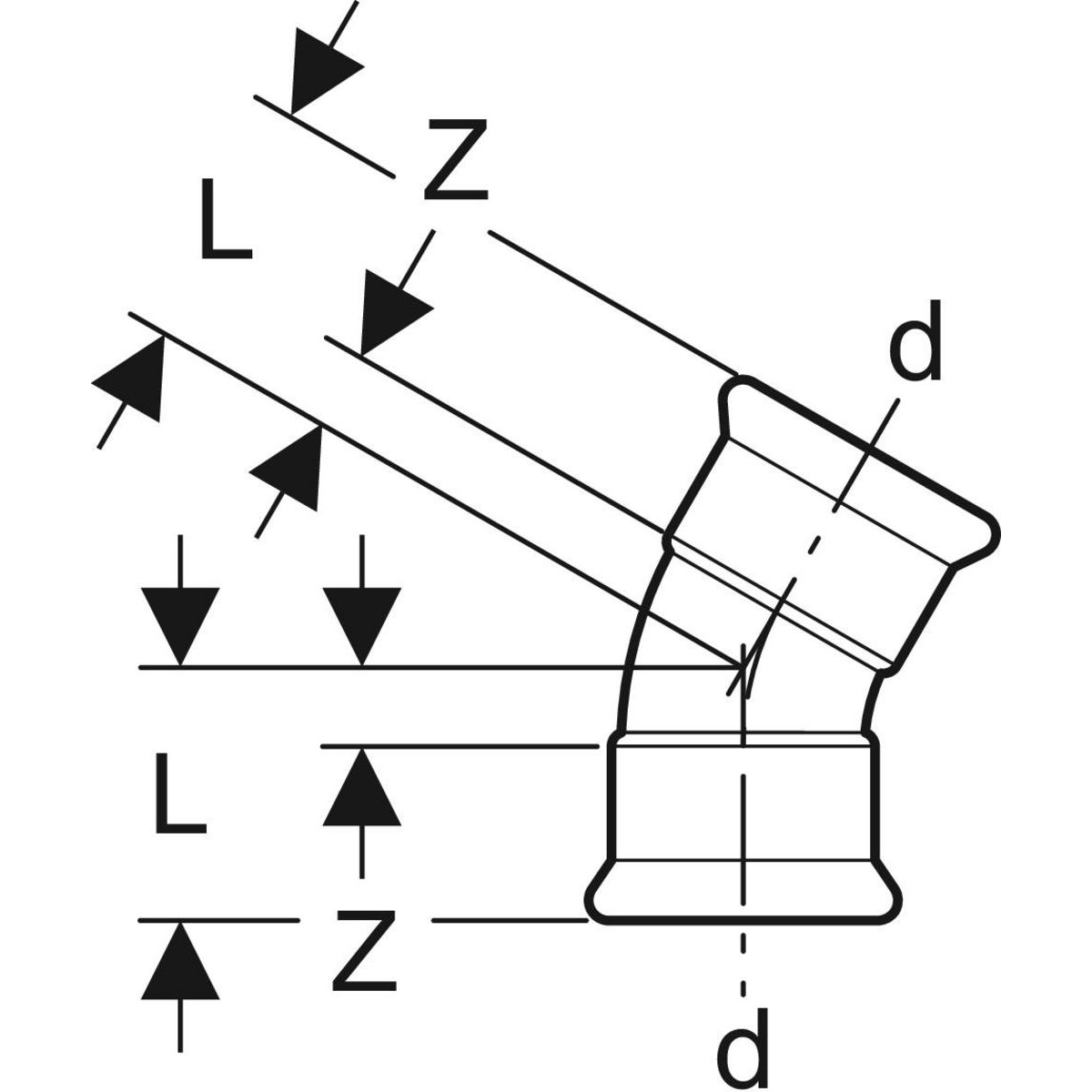 Kolano 30' GEBERIT Mapress Edelstahl, stal nierdzewna, 108 mm, DN 100 x 108 mm x DN 100 (mufa zaprasowywana x mufa zaprasowywana), (głębokość: 47 mm) z uszczelką