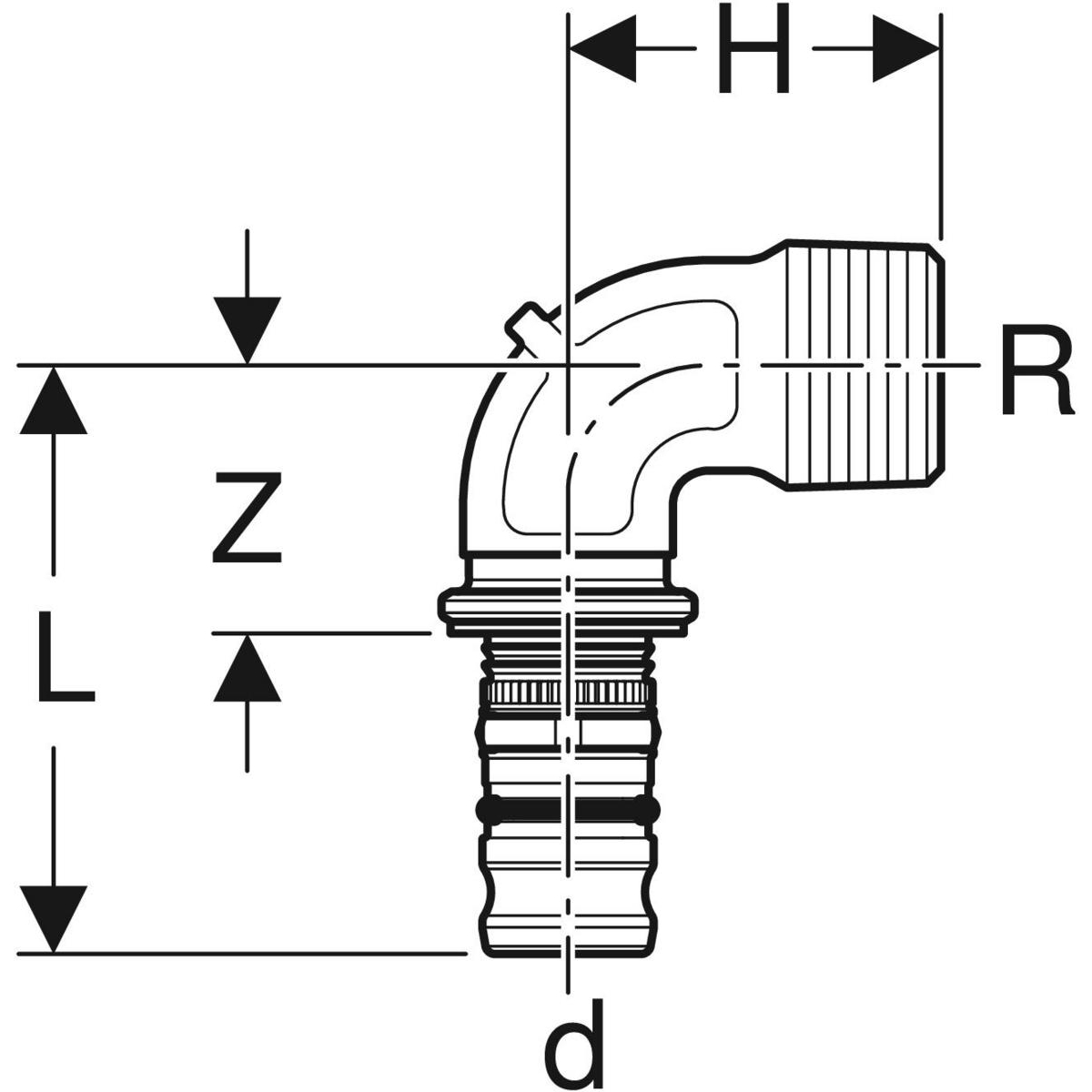 Kolano 90' GEBERIT Mepla, brąz, 1 1/4'' x 40 mm (GZ gazowy stożkowy x końcówka wciskowa)