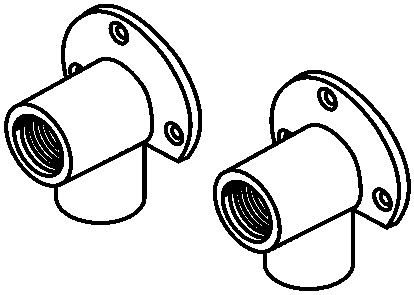 Dwa kolana naścienne z gwintem Rp 1/2" x 1/2". Do opcjonalnego połączenia z zestawem montażowym TECEone jako uniwersalne połączenie z konwencjonalnymi systemami rurociągów.