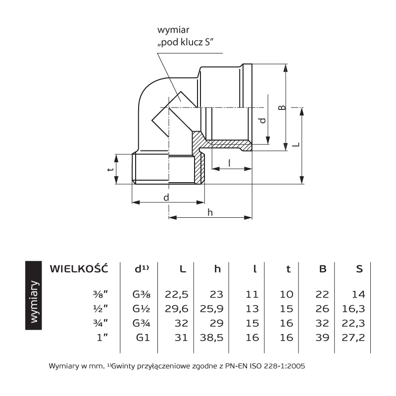 Znamionowa średnica wewnętrzna połączenia 1