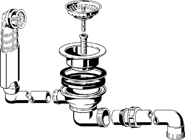Komplet odpływowo-przelewowy nr wzoru 7139.152 G: 1½ fi: 114,5 do zlewozmywaków z otworem odpływowym fi 90