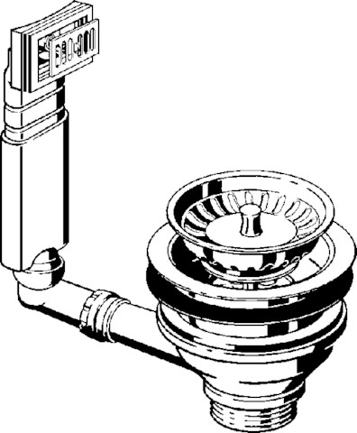 Komplet odpływowo-przelewowy. Przeznaczenie: zlewozmywak, tworzywo sztuczne. Wyposażenie: Wyjmowany koszyczek ze stali nierdzewnej, górna część zaworu ze stali nierdzewnej, sitko do przelewu, przegub kulowy, rura przelewowa z regulacją wysokości, nr wzoru 7128.4, nr kat. 325 107, G: 1½ Ø: 114,5 wysokość zabudowy dolnej części zaworu: 60 do zlewozmywaków z otworem odpływowym Ø 90,