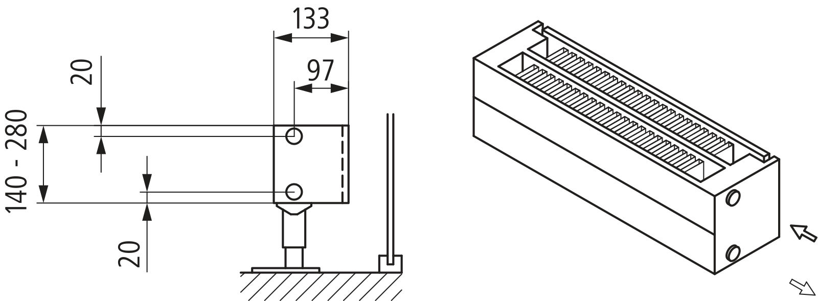 Specjalna osłona przeciw wypromieniowaniu ciepła montowana jest na tylnej ścianie konwektora. Uniemożliwia ona promieniowanie ciepłego powietrza w stronę przeszklonej powierzchni i dzięki temu zmniejsza stratę ciepła aż do 80%.