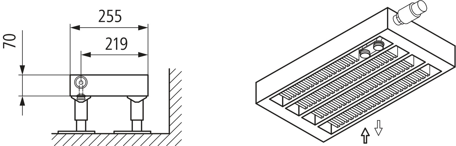 Konwektor Kermi V-Konvektor Typ54 BH70x255x700mm QN718, weiß, 6 bar, m. Abd., Vent. re