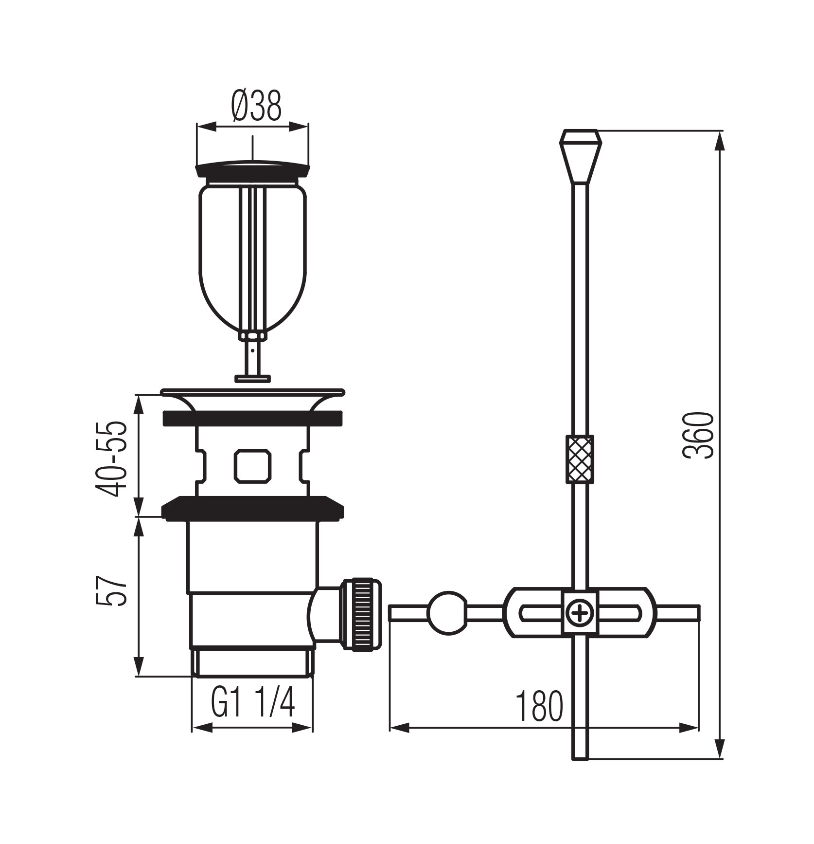 - korek spustowy z pociągaczem wyposażony w mechanizm, umożliwiający otwarcie i zamknięcie odpływu bez konieczności zanurzania rąk w wodzie