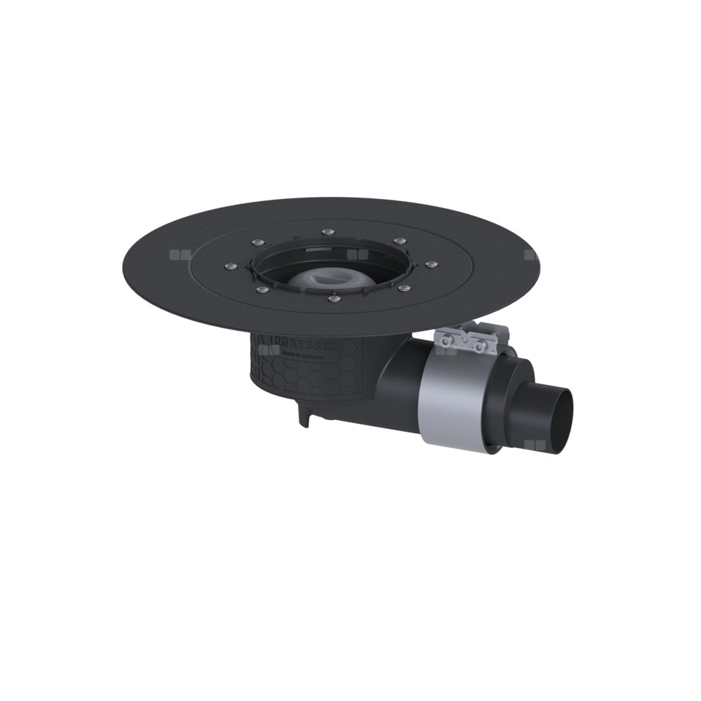 KESSEL Korpus Ecoguss, wielkość nominalna (DN) 50, króciec boczny, odwodnienie przez odpływ punktowy, syfonem w zestawie, zszczelnienie korpusie przez Kołnierz do uszczelnień klejonych (odpowiedni do barier przeciwwilgociowych)