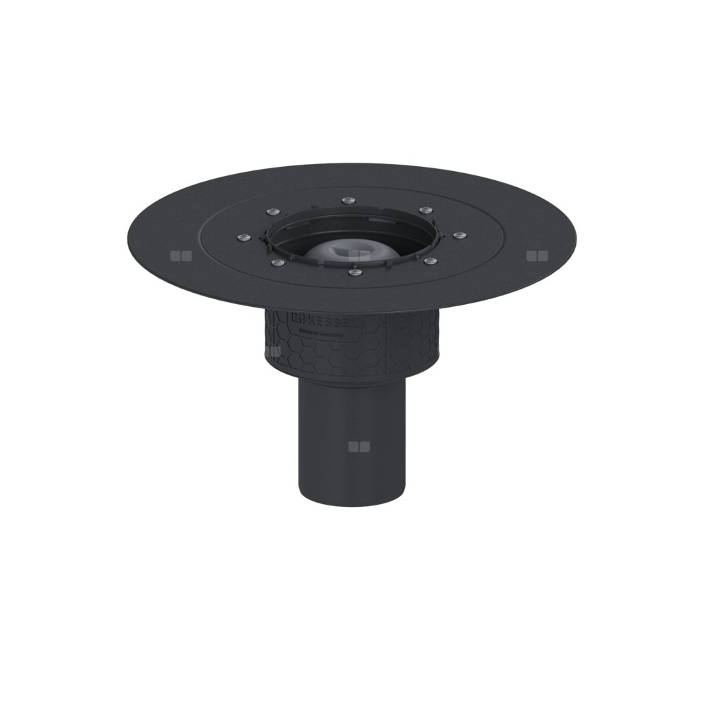 KESSEL Korpus Ecoguss, wielkość nominalna (DN) 80, króciec pionowy, odwodnienie przez odpływ punktowy, syfonem w zestawie, zszczelnienie korpusie przez Kołnierz do uszczelnień klejonych (odpowiedni do barier przeciwwilgociowych)