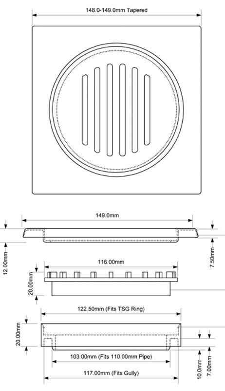 Kratka podłogowa, wykonana ze stali nierdzewnej. Rozmiar 150x150mm.