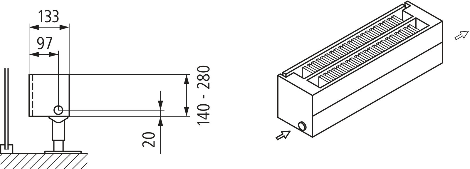 KSN22 be zosłony 210x133x1700 RAL9016, 6 bar, bez osłony, podł. Uni.