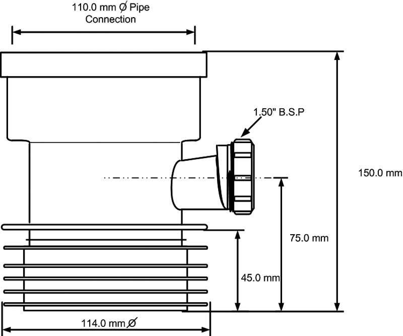 Łącznik kanalizacyjny 110mm, z wyjściem 110mm i odejściem 40mm. L-150mm.