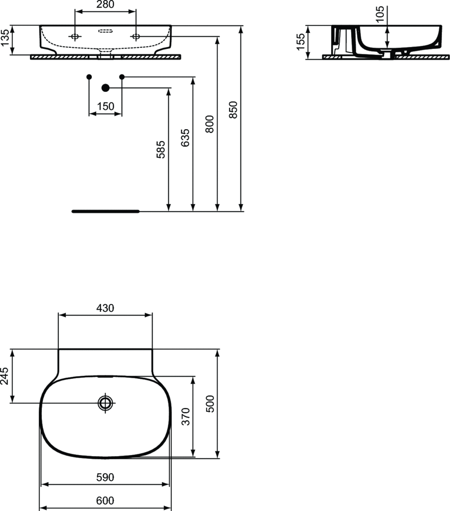 LINDA-X Umywalka 60cm B/O SLOT Z/P GLS W
