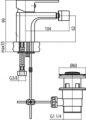 LOFT BLACK bateria bidetowa, korek spustowy, black mat