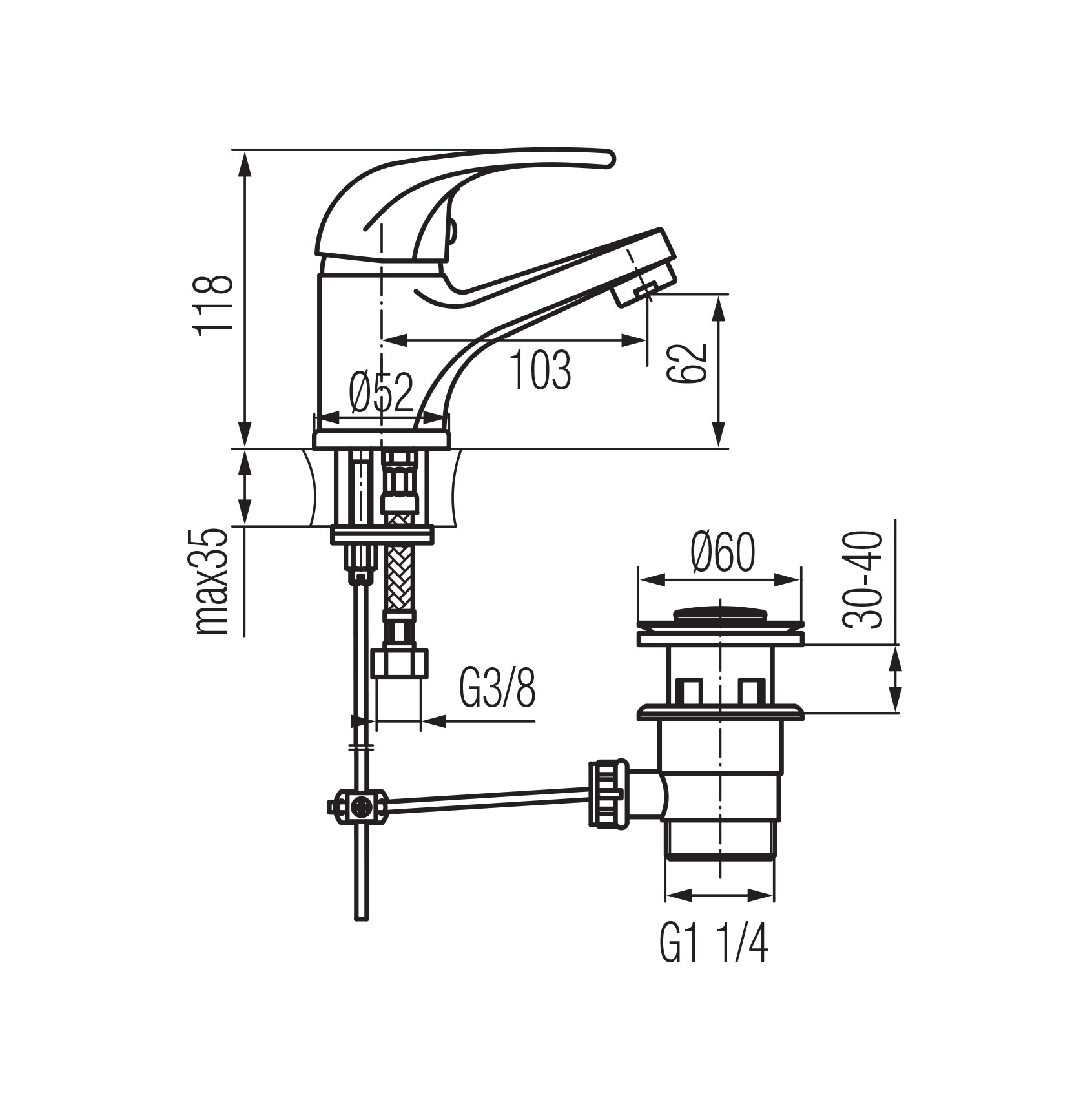 LOGIC bateria umywalkowa stojąca ze sterowanym spustem