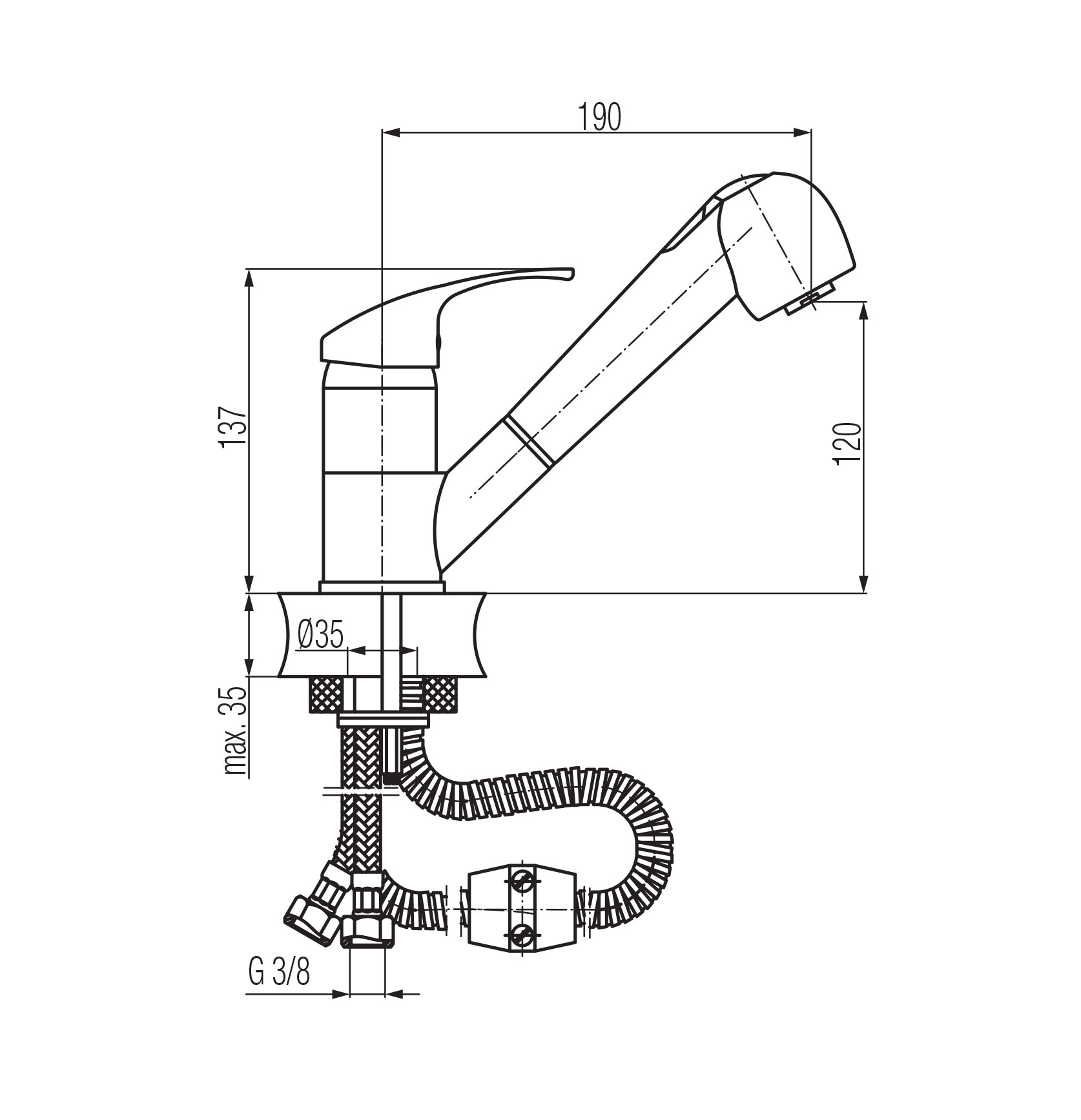 - komfort korzystania z baterii zapewnia wyciągana wylewka, umożliwiająca opłukanie przedmiotów o zróżnicowanych gabarytach