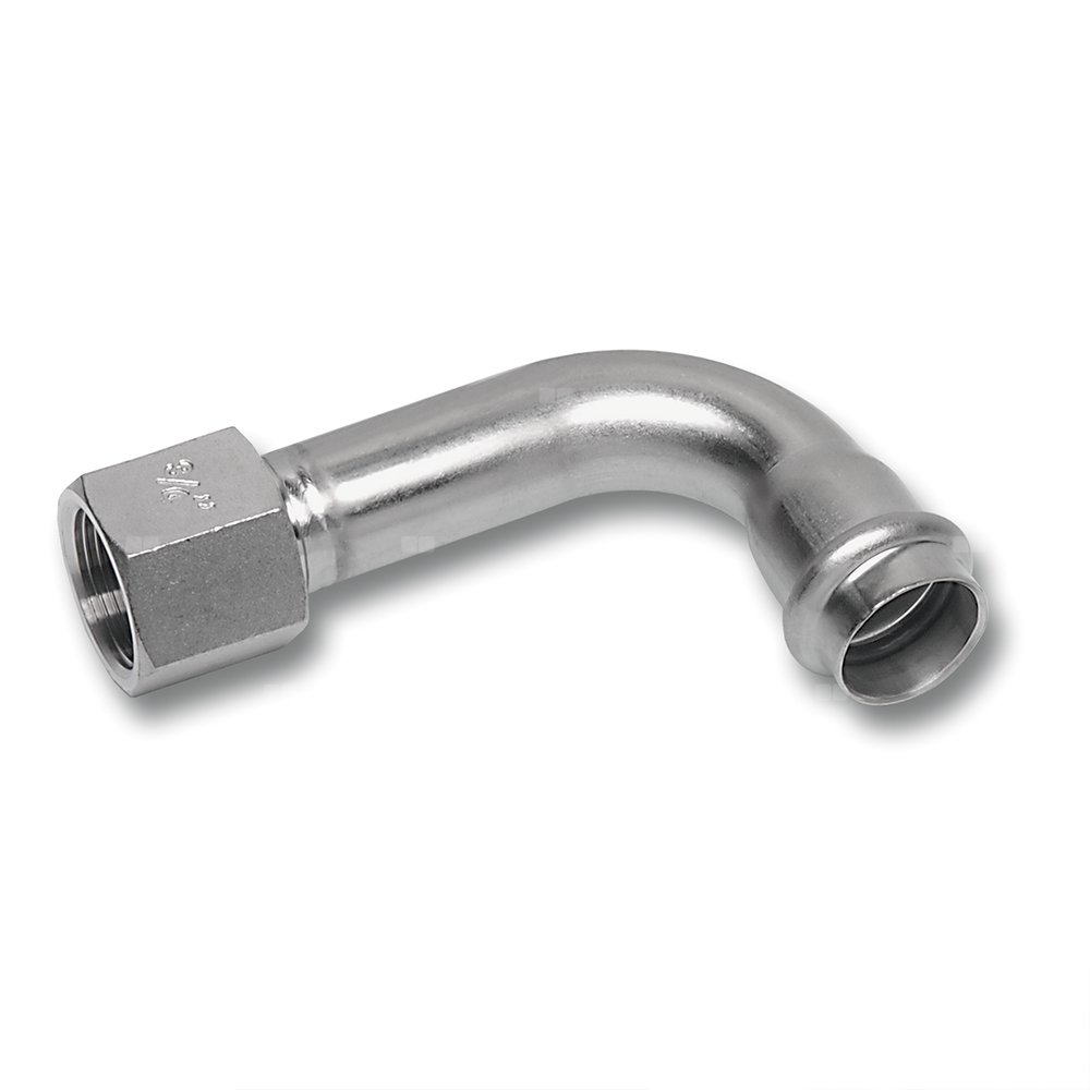 Łuk 90' SANHA NiroSan Press, stal nierdzewna, 15 mm x 1/2'' (zw x GW)