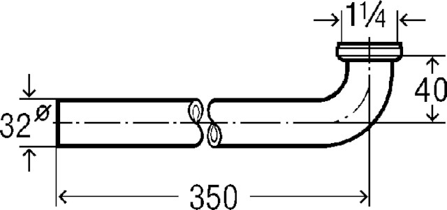 Łuk odpływowy 90 st. mosiądz chrom., nr wzoru 5621.24 G: 1¼ DN: 32 L: 350