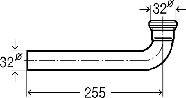 Łuk odpływowy 90°, mosiądz chrom., nr wzoru 5622.2, nr kat. 407 230, DN: 32 L: 255