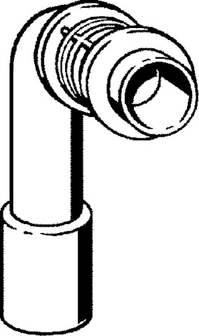 Łuk odpływowy 90°. Przeznaczenie: montaż modułu do umywalki lub stelaża do umywalki Viega Eco Plus przy grubości stelaża ściany szkieletowej 75 mm, PP, z możliwością regulacji. Wyposażenie: Z rowkiem do zamocowania w uchwycie elementu do umywalki, nr wzoru 8113.21, nr kat. 331 160, DN: 40/50
