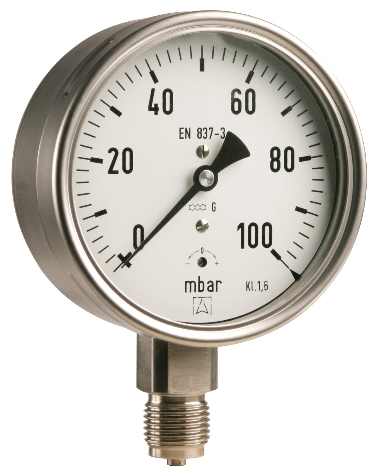 Manometr z rurką Bourdona AFRISO RF chemiczny 0/0,6 bar G1/2B radialne fi 100 mm, kl. 1,0%