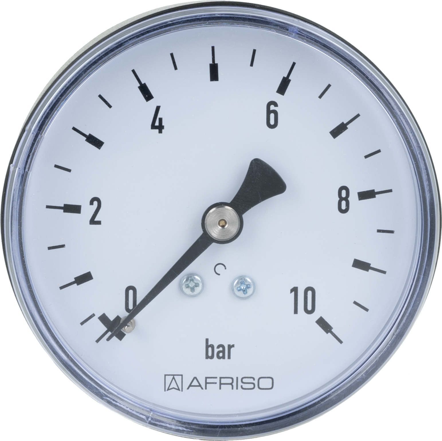 Manometr z rurką Bourdona AFRISO RF grzewczy 0/10 bar G1/4B aksjalne fi 63 mm, kl. 2.5%