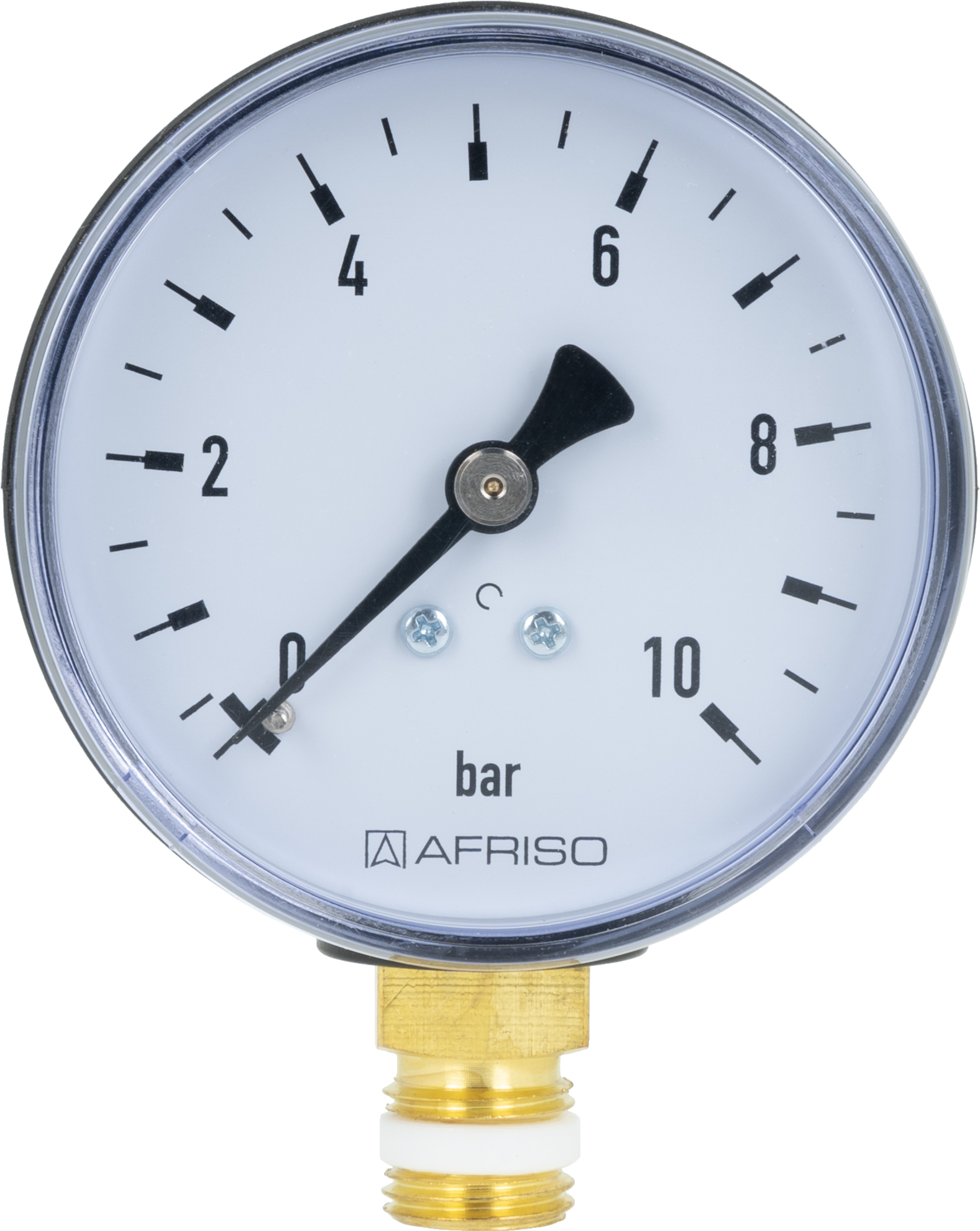 Manometr z rurką Bourdona AFRISO RF grzewczy 0/10 bar G1/4B radialne fi 63 mm, kl. 2.5%
