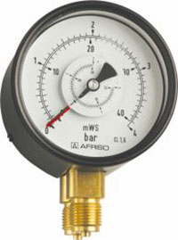 Manometr z rurką Bourdona AFRISO RF różnicy ciśnień 0/0,6 bar G1/2B radialne fi 100 mm, kl. 1.6%