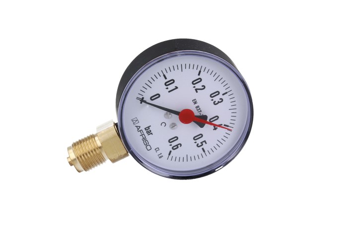 Manometr z rurką Bourdona AFRISO RF standardowy 0/0,6 bar G1/2B radialne fi 80 mm, kl. 1.6%