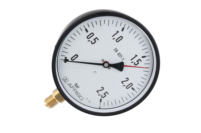 Manometr z rurką Bourdona AFRISO RF standardowy 0/2,5 bar G1/2B radialne fi 160 mm, kl. 1.6%