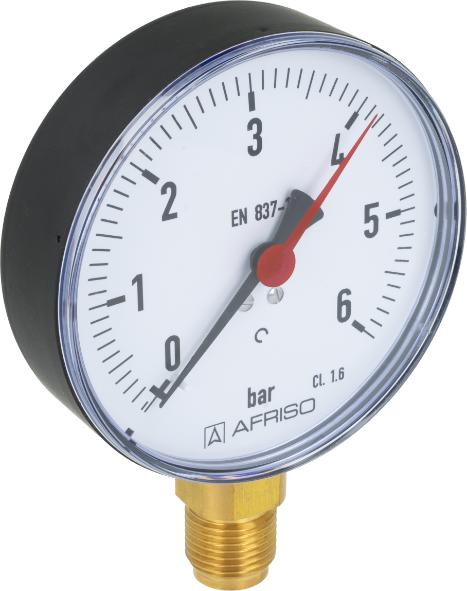Manometr z rurką Bourdona AFRISO RF standardowy 0/6 bar G1/2B radialne fi 100 mm, kl. 1.6%