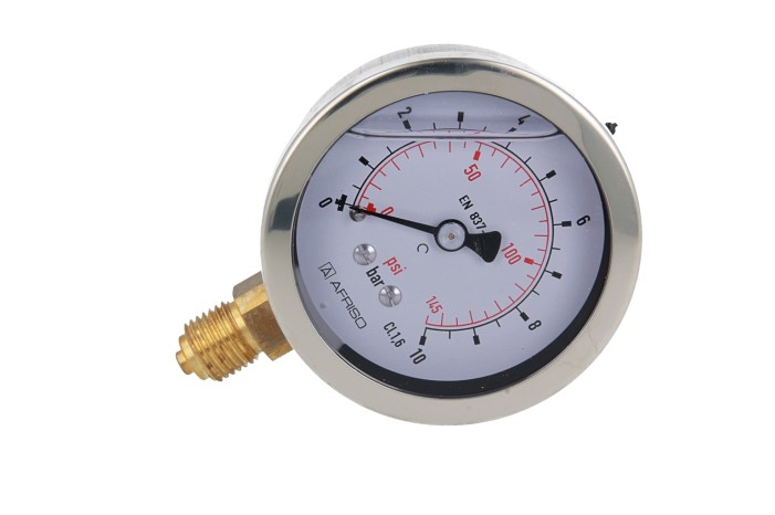 Manometr z rurką Bourdona AFRISO RF wstrząsoodporny 0/10 bar G1/4B radialne fi 63 mm, kl. 1.6%