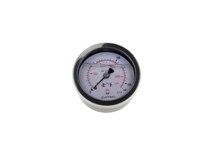 Manometr z rurką Bourdona AFRISO RF wstrząsoodporny 0/160 bar G1/4B aksjalne fi 63 mm, kl. 1.6%