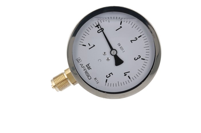 Manometr z rurką Bourdona AFRISO RF wstrząsoodporny -1/5 bar G1/2B radialne fi 100 mm, kl. 1.6%