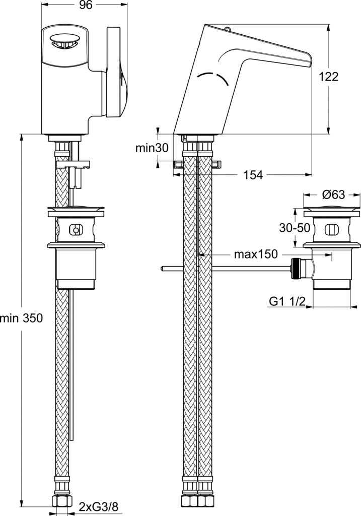 Głowica Multiport 40 mm. Ogranicznik przepływu wody do 5 l/min. Wężyki przyłączeniowe G3/8". Aerator laminarny. Metalowy uchwyt. Metalowy korek automatyczny. System montażu EASY-FIX.