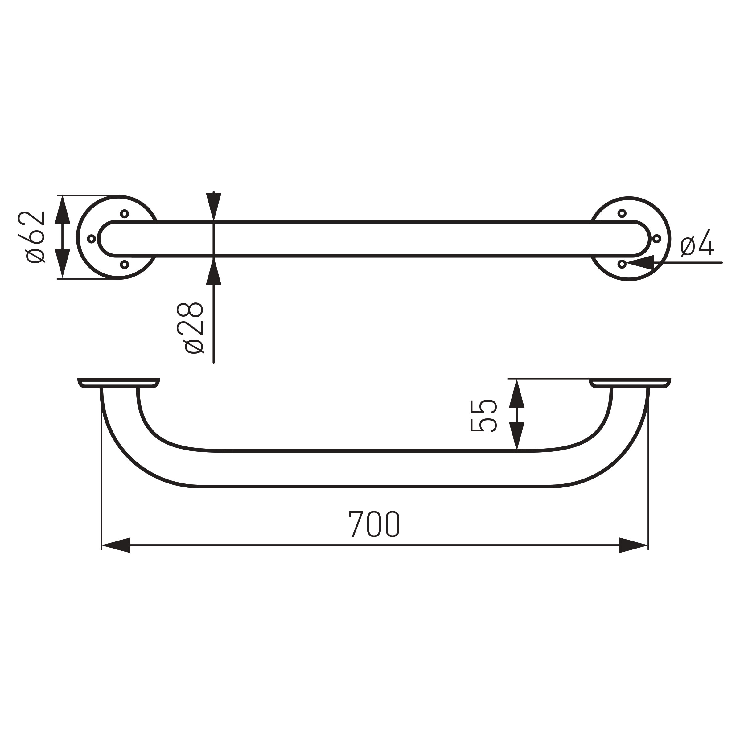 METALIA HELP uchwyt pojedynczy 70 cm, biały
