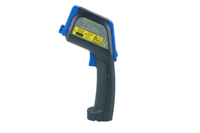 Laserowy wskaźnik pokazujący środek pola powierzchni, którego temperaturę bada termometr.