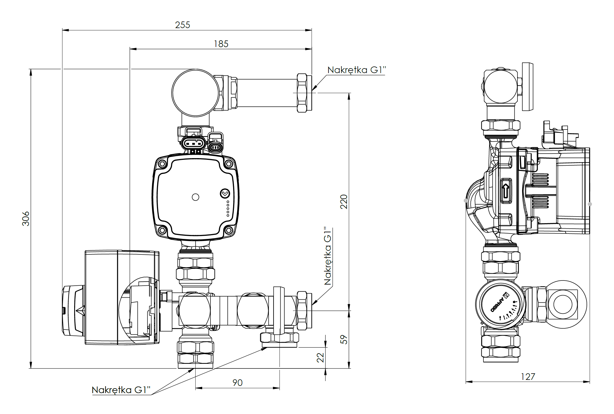 Moduł mieszający BRU 551 do ogrzewania podłogowego z zaworem ARV 362 Vario ProClick